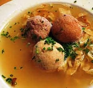 Un joli petit nom pour un joli petit plat. Enfin on parle plutôt d’une entrée. Cette soupe aux boulettes de semoule avec des lamelles de crêpes salées ou des knödel à base de foie n’est certes pas très légère mais la cuisine autrichienne n’est pas connue pour sa valeur diététique et c’est tant mieux.