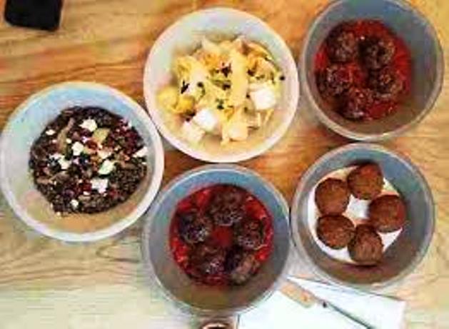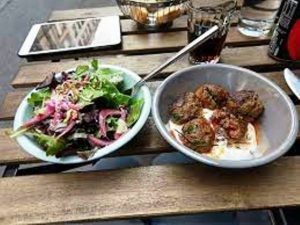 Boulettes de viandes ou végétariennes servies par cinq dans une cantine en vogue ou en sandwich à emporter.