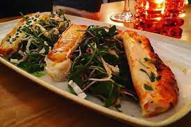 Wagyu veut dire “boeuf japonais”. Cette viande persillée est un met d’exception. Produit de luxe au goût inimitable, il est au coeur de la cuisine du chef Tatsuya Noda, qui le propose saignant (pas le choix) et le dresse dans vos assiettes sous vos yeux.