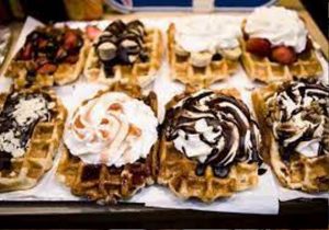 Ainsi on pourra déguster différents types de gaufres (pomme de terre, cidre, sarrasin, façon fallafel…) telle la montagnarde à base de pomme de terre, surmontée de bresaola et raclette, une gaufre au saumon et chantilly à l’aneth citronnée et même une gaufre burger !