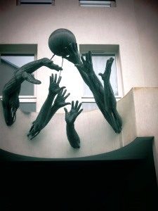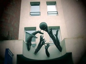 Une belle sculpture inspirée par les sports de balle au 5 rue Neuve Saint Pierre 75004