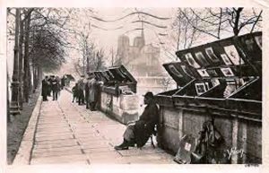 Véritables symboles des quais de Seine aujourd’hui, ces passionnés de livres tâtaient déjà du bouquin au XVIe siècle ! À noter qu’au XIIIe siècle également, des libraires jurés (marchands chargés de vendre des manuscrits originaux sous la surveillance de l’université de Paris devant laquelle ils ont prêté serment) exposaient une fois par an les livres manuscrits de leurs magasins dans des boutiques portatives.