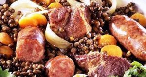 Petit salé aux lentilles du Puy et saucisses de Montbéliard