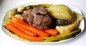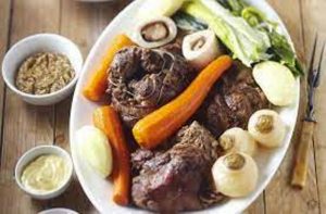 Le pot-au-feu est une des recettes phares de notre gastronomie. C’est un bouillon dans lequel ont cuit longuement de la viande de boeuf et des légumes. Il y a des centaines de variantes, il n’existe que des vraies recettes de pot-au-feu tant que le principe reste le même. Le bouillon peut vous resservir comme base d’une autre recette ou alors pour préparer une soupe. L’adage « c’est meilleur réchauffé » est juste pour le pot-au-feu, c’est même conseillé car il vous permet une fois refroidi de retirer la couche de gras qui figera rendant votre pot-au-feu plus digeste. Pour la viande, prenez ce que vous trouvez, idéalement mélangez des morceaux gras : plat de côtes, flanchet de la maigre : macreuse, griffe et de la gélatineuse comme le paleron ou la queue. Pour réaliser un vrai pot-au-feu traditionnel à l’ancienne, nos grands mères disaient qu’il fallait 4 morceaux différents de boeuf