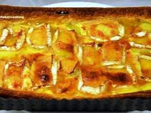 Les ingrédients utilisés pour réaliser la recette sont : rouleau de pâte brisée, pommes, sucre en poudre, lait, crème fraîche, œufs, gousse de vanille, jus de citron, beurre, sucre glace…