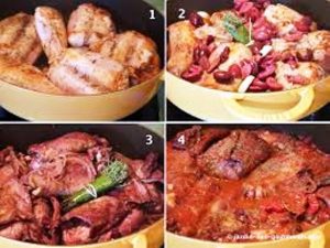 Les divers ingrédients utilisés pour réussir la recette sont : lapin coupé en morceaux, tomates pelées en boîte, olives noires dénoyautées, gousses d’ail, oignon jaune, oignon nouveau, herbes de Provence, vin rouge, huile d’olive, sel, poivre…