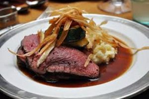 Les divers ingrédients utilisés pour réussir la recette sont : onglet, échalotes, vin rouge, fond de veau, beurre, huile d’olive, vinaigre rouge, brin de thym, sel, poivre…