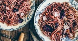 Si vous en avez assez de la traditionnelle sauce bolognaise, testez donc cette recette de spaghettis au vin rouge ! Les pâtes y sont préparées avec du ketchup et du piment d’Espelette, pour un maximum de saveurs en bouche.