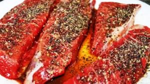Steak grillé mariné au vin