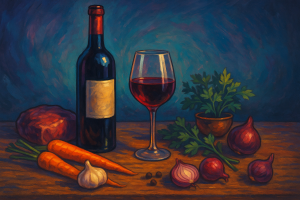 Aux fourneaux, le vin rouge peut également faire partie intégrante d’une recette, en témoigne la richesse du patrimoine culinaire français. Généralement, il est utilisé pour préparer des recettes de plats mijotés, des marinades ou des sauces (bordelaise, meurette ou marchand de vin) qui agrémentent des viandes telles que du bœuf, du veau ou du coq, mais aussi du poisson.