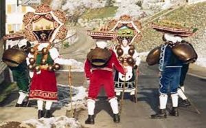 Il existe une tradition emblématique du Nouvel An dans la région d’Appenzell qui pousse les jeunes à yodler dans la campagne glaciale, tout en arborant fièrement une énorme coiffure et des cloches de vache géantes. Le‘ Silvesterklaeuse‘, ou ‘les colporteurs de la St Sylvestre’, apparaissent deux fois chaque année : le 31 Décembre et 13 Janvier, paradant de villages en villages pour célébrer la nouvelle année. Les deux dates remontent à un différend du 16ème siècle, lorsque de nombreux habitants se sont opposés au nouveau calendrier proclamé par le pape Grégoire XIII fixant la nouvelle année au 31 Décembre alors qu’ils voulaient s’en tenir au 13 Janvier, en ligne avec l’ancien calendrier julien. Dans l’incapacité de trancher, les habitants de la région décidèrent donc de célébrer le Nouvel An deux fois.