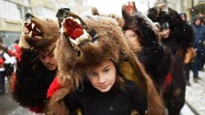 La veille du Nouvel An, les habitants de la région de Moldavie, en Roumanie enfilent de réelles peaux d’ours et se mettent à danser autour de leur ville pour chasser les mauvais esprits, car l’ours est un protecteur dans la mythologie slave. Dans le passé, un véritable ours était présent et sa danse était censée purifier et fertiliser le sol pour la prochaine année. Le chant de la danse dit: “Danse bien, vieil ours, Et je te donnerai du pain et des olives“.