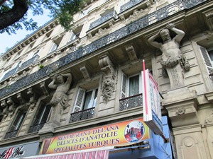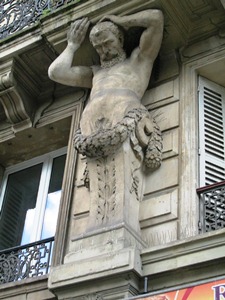 Deux atlantes sur la façade du 10 boulevard de Magenta 75010