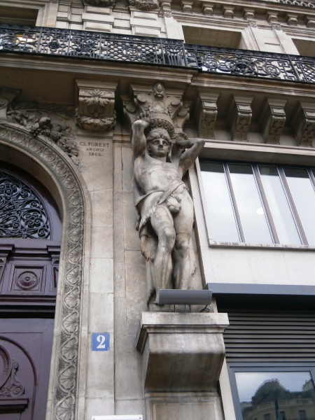 Après avoir traversé la place d’Estienne d’Orves 75009, au 2 rue Blanche 75009 , le portail est orné de deux Atlantes