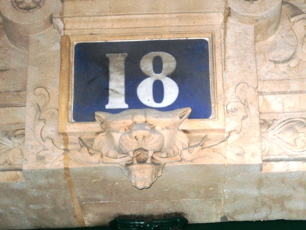 Une tête de félin orne le portail du 18 rue Blanche 75009