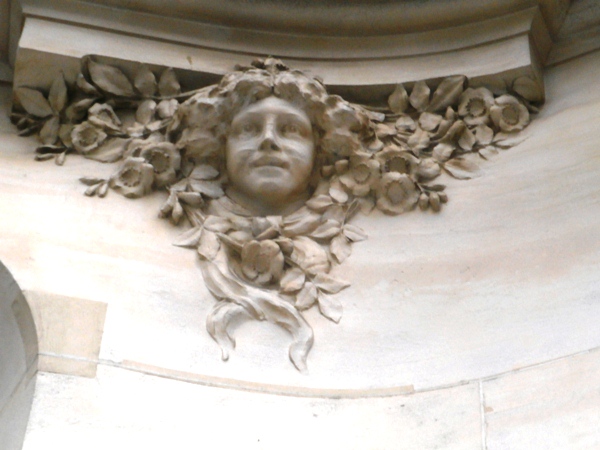Sur la façade du 22 rue de Mogador 75009 une belle tête de femme sculptée