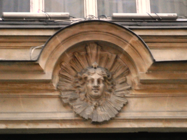 Une tête de femme rayonnante orne l’entrée du 23 rue de Mogador 75009