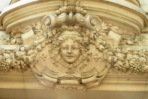Une rayonnante femme orne le portail du 23 rue Royale 75008