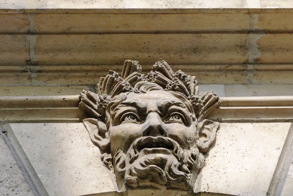 Une série de têtes de guerriers sur la façade de l’immeuble sis au 360 rue Saint Honoré 75001