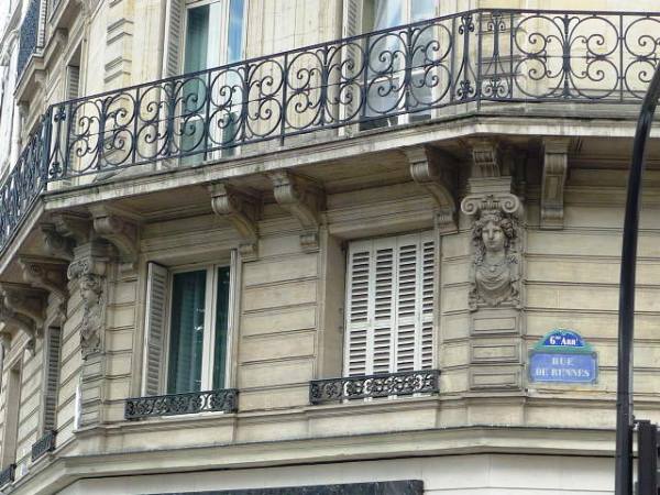 A l’angle du boulevard Saint Germain et de la rue de Rennes 75006, des têtes de femmes supportent le balcon