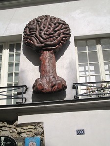 Un bas relief d’un arbre majestueux, enseigne d’un ancien bal « Le Vieux Chêne« au 69 rue Mouffetard 75005