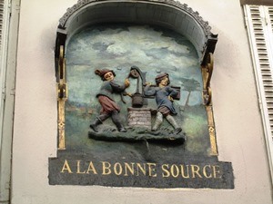 Un superbe bas relief d’un ancien commerce de vins au 122 rue Mouffetard 75005