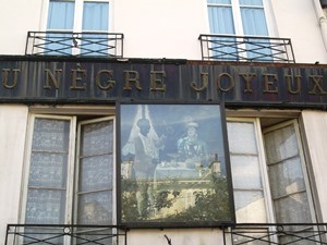 L’enseigne d’une ancienne chocolaterie au Nègre Joyeux 16 rue Mouffetard 75005