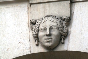 Une tête de femme orne l’entrée du 6 rue d’Ulm 75005