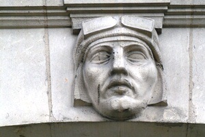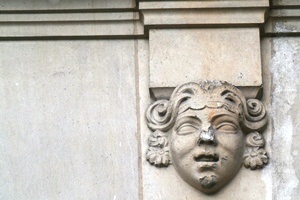 Au 4 place du Panthéon 75005, une tête orne la façade