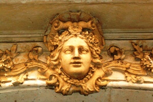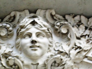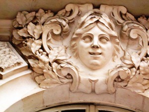 Une souriante tête de femme orne le portail du 2 rue Guynemer 75006