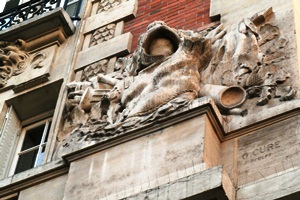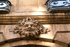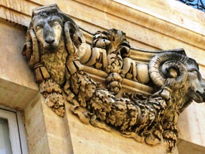 Des têtes de béliers parent la façade du 8 rue Garancière 75006