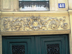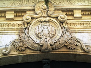 Un beau médaillon avec une abeille au dessus du portail du 10 rue Garancière 75006