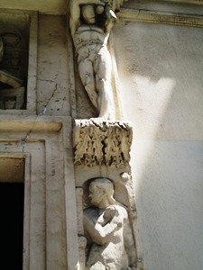 Des angelots supportent un balcon du 8 rue de Condé 75006