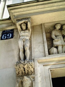 Une belle façade avec un atlante et une cariatide au 79 rue Madame 75006