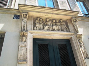 Au 69 rue Madame 75006, un beau beau bas-relief et des sculptures ornent l’entrée