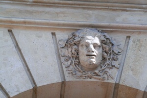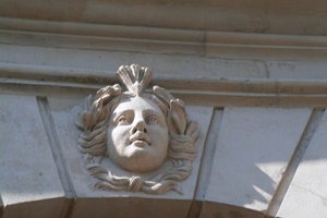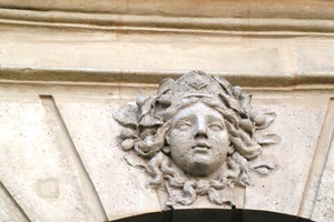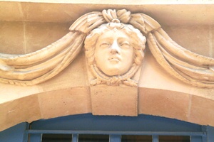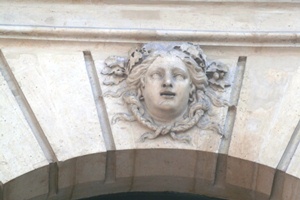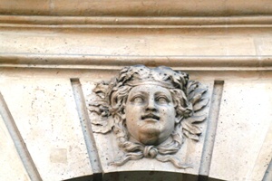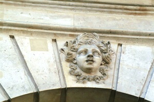 Une très belle série de têtes de femmes et d’hommes sur les façades des immeubles de la place des Victoires 75001