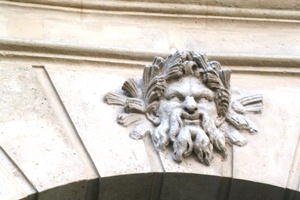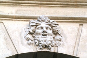 Sur la façade du 58 rue  Jean Jacques Rousseau 75001 une tête de lion