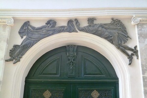 Une proue de navire orne l’entrée du 70 rue  Jean Jacques Rousseau 75001