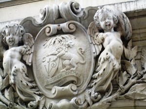 Un beau macaron avec deux angelots au 76 rue Jacob 75006