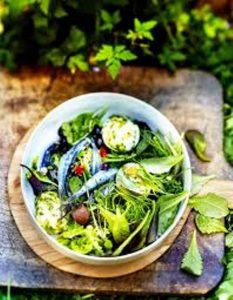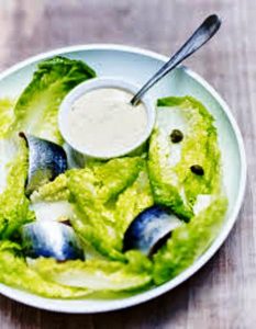Pour la sauce escabèche : huile d’olive, gousses d’ail, bouquet de persil, vinaigre balsamique, pulpe de tomates, graines de cumin, tapenade d’olive noire, boîtes de sardines sans huile marinées au basilic/citron, salade mélangée, ciboulette émincée…