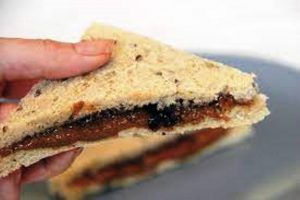 Une tranche de pain de mie complet (78g) avec 1 cuillère à café (5g) de beurre de cacahuètes.