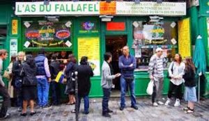 As du Fallafel, un restaurant yiddish et casher à Paris. Tant pis encore si la réservation reste toujours impossible, et tant pis encore si il faut parfois patienter un bon moment pour obtenir l’une des petites tables où l’on peut se retrouver au coude à coude avec un illustre inconnu… ou même parfois avec Youri Djorkaeff, Lenny Kravitz, Arthur, Alabina ou Vanessa Paradis, qui ont ici leurs habitudes.