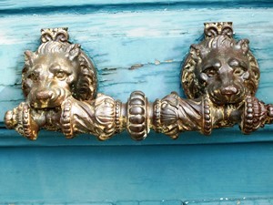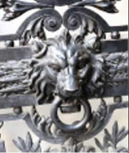 Un heurtoir  très ouvragé avec  une tête de lion au  102 rue du Bac 75007