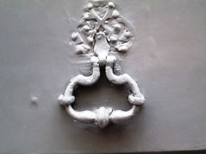 Au 18 rue des Canettes 75006 un heurtoir en bronze avec un fond ciselé