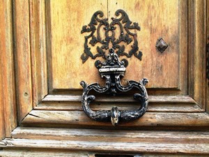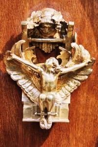 Un superbe heurtoir de porte religieux au 5 rue Sully-Prudhomme 75007