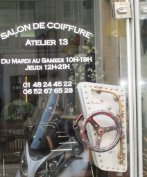 Une poignée de porte moderne et originale pour le salon de coiffure Atelier 13 rue Cadet 75009