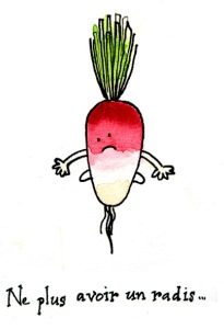 Expression française du milieu du XIXème siècle qui utilise la métaphore du radis sachant que ce légume était vendu à un prix modique et il arrivait même qu’il était offert gratuitement dans les cafés et bars d’antan pour stimuler la soif.