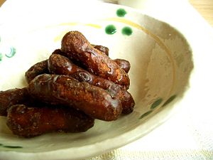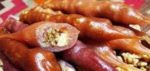 C’est un effilement de noix qui ont été trempés dans du jus de raisin appelé Phelamushi (jus de raisin épaissi avec de la farine pouvant quelquefois contenir de l’alcool), et séché au soleil.