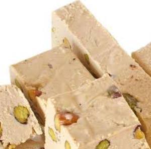 Le nougat syrien est à l’origine du nougat français mais n’est pas composé de miel, il est aux pistaches et présente la particularité d’être peu sucré, laissant s’épanouir les saveurs des ingrédients qui le composent, subtilement rehaussées d’une pointe de vanille.