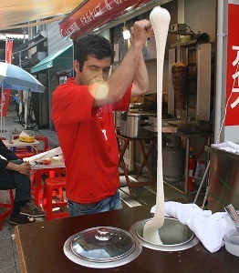 Crémeuse, élastique et à l’aspect d’un gros chewing-gum, cette gourmandise est vendue dans les rue turques et servie autour d’un « rituel » impliquant de taper sur des cloches et parfois même de faire des acrobaties. La glace est battue devant vos yeux pour lui assurer une élasticité totale.